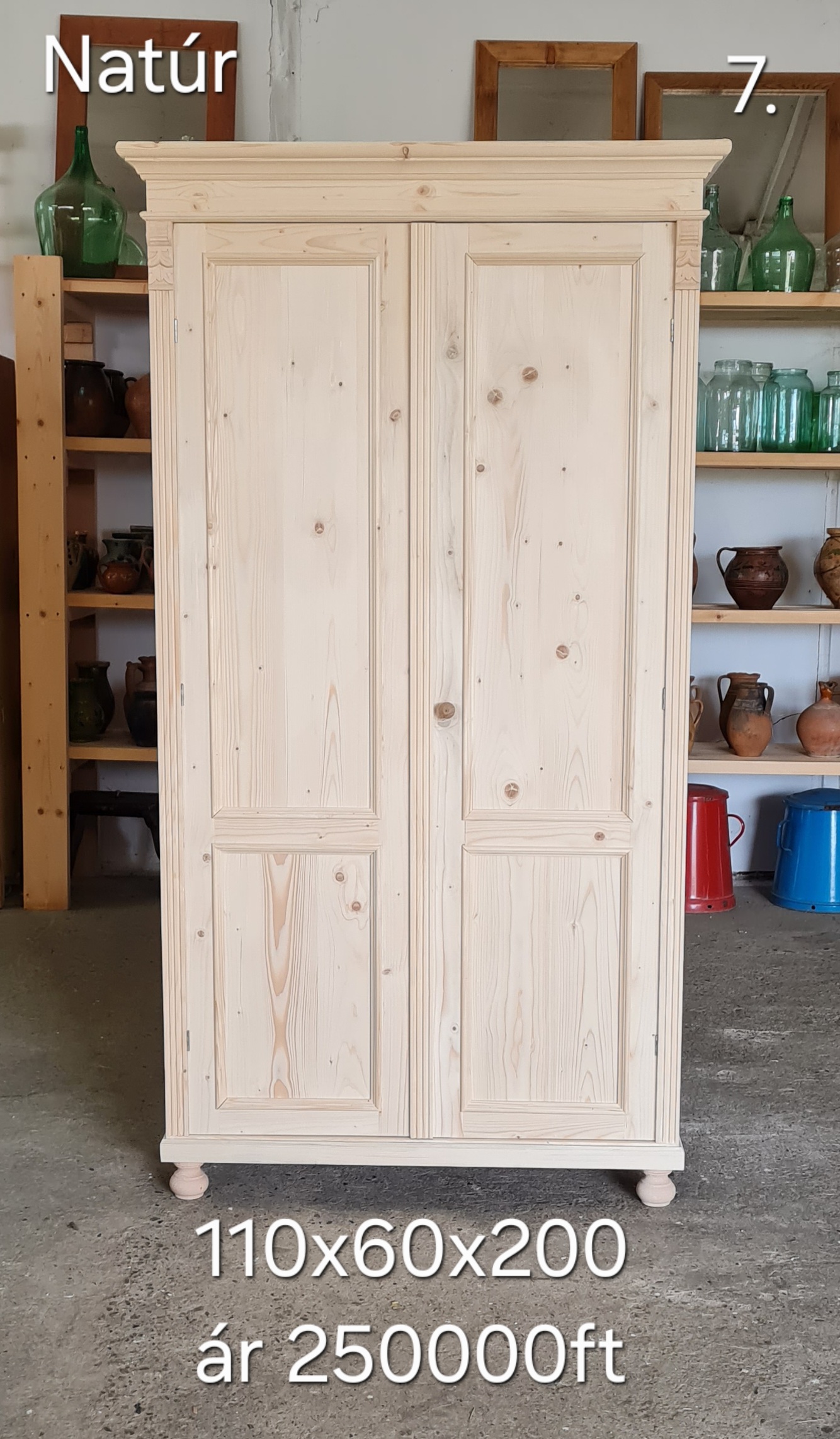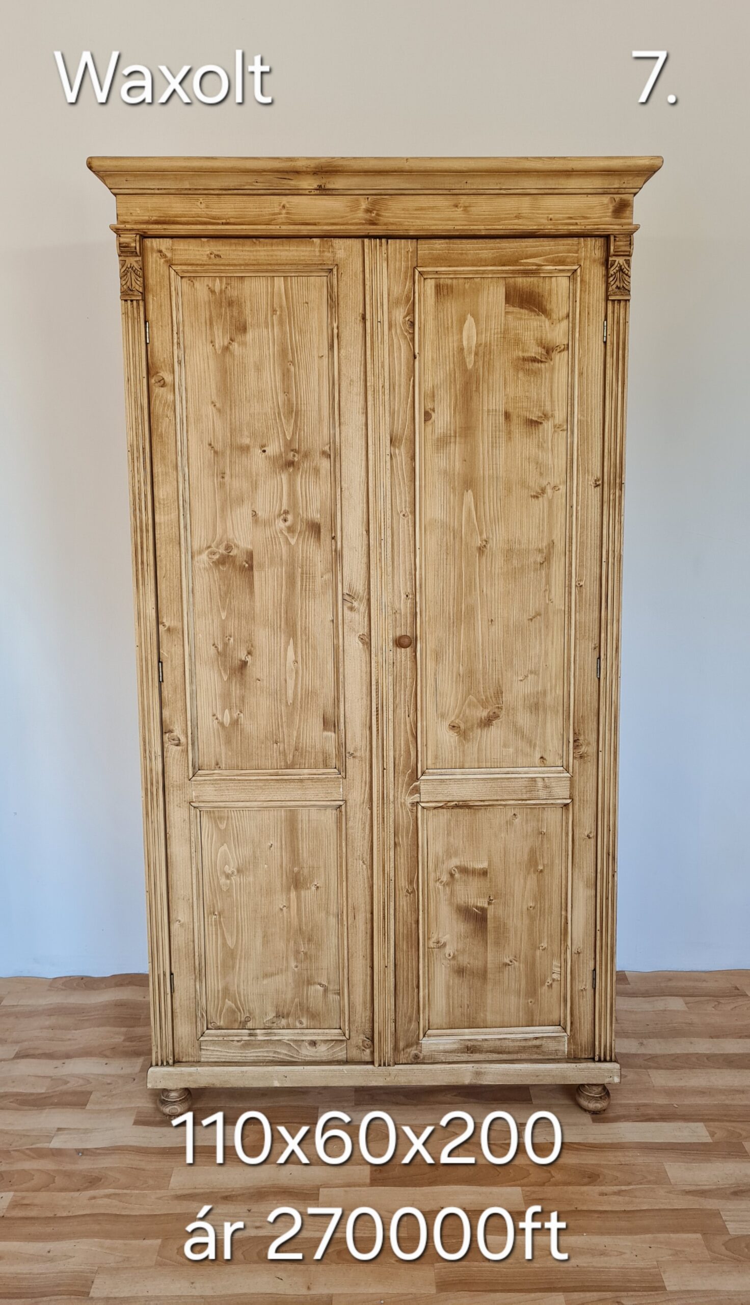 B. Ruhásszekrény díszes, tele ajtós, válfás 110x60x200cm – új készítésű