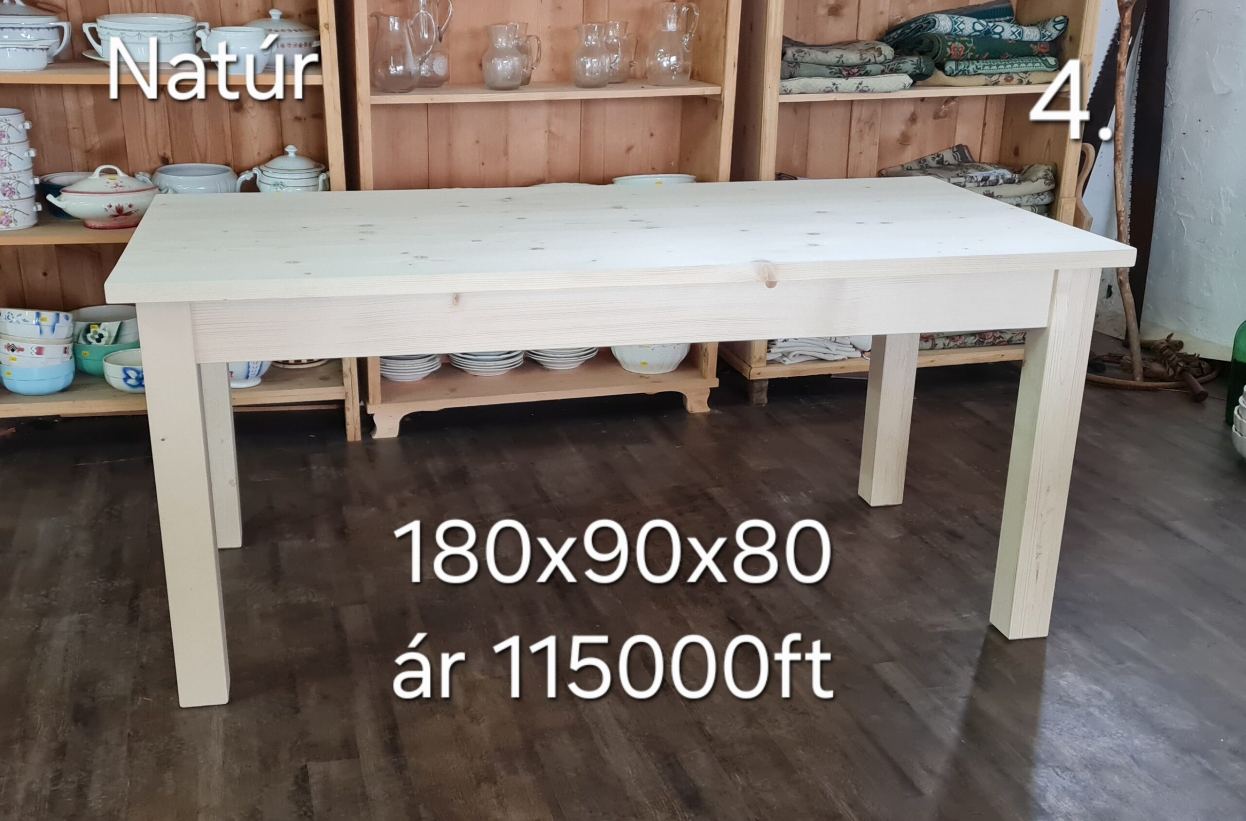 | Felületkezelés | Natúr, Waxolt, Méhviaszolt, Lazúros, Színre festett, Kombinált |