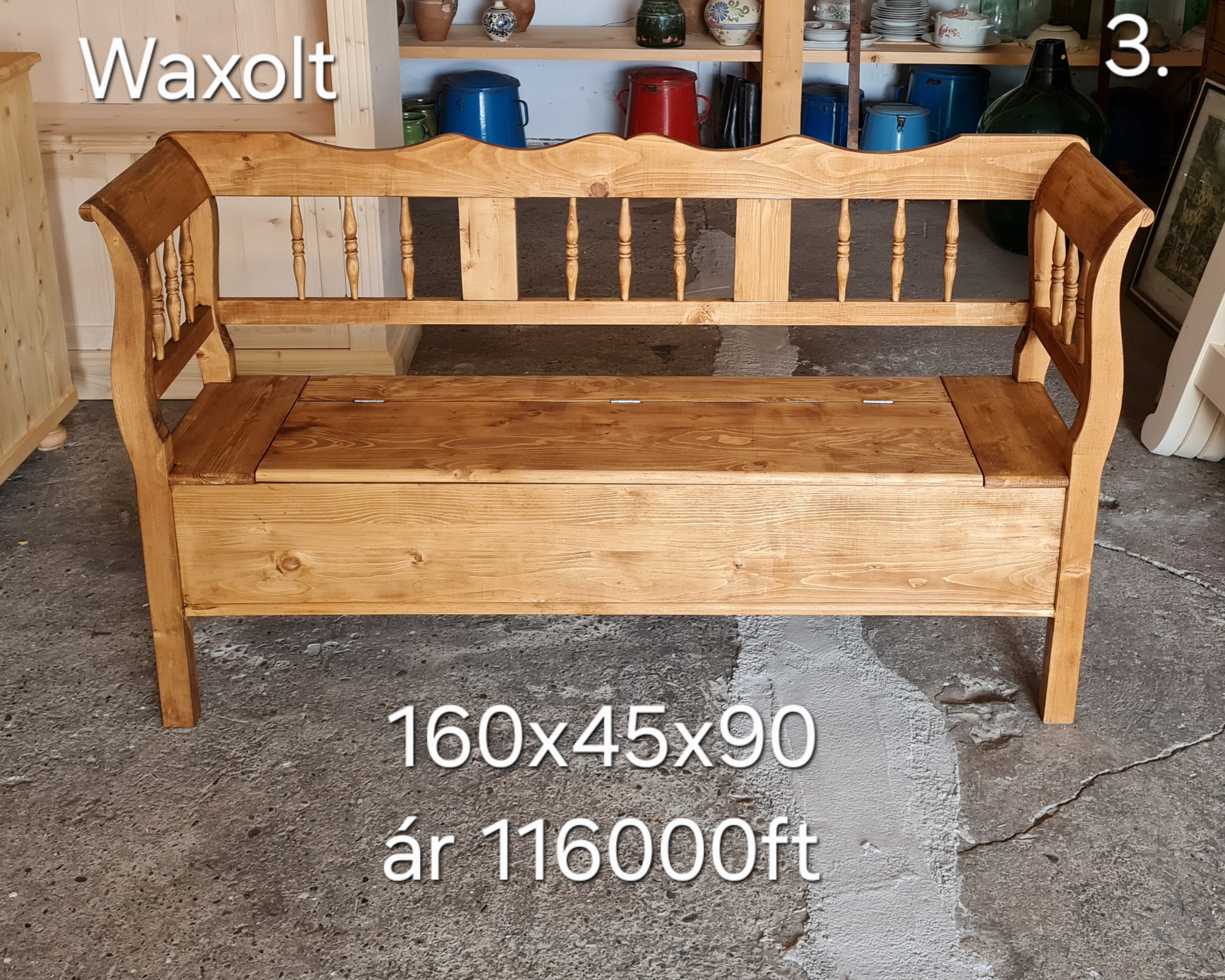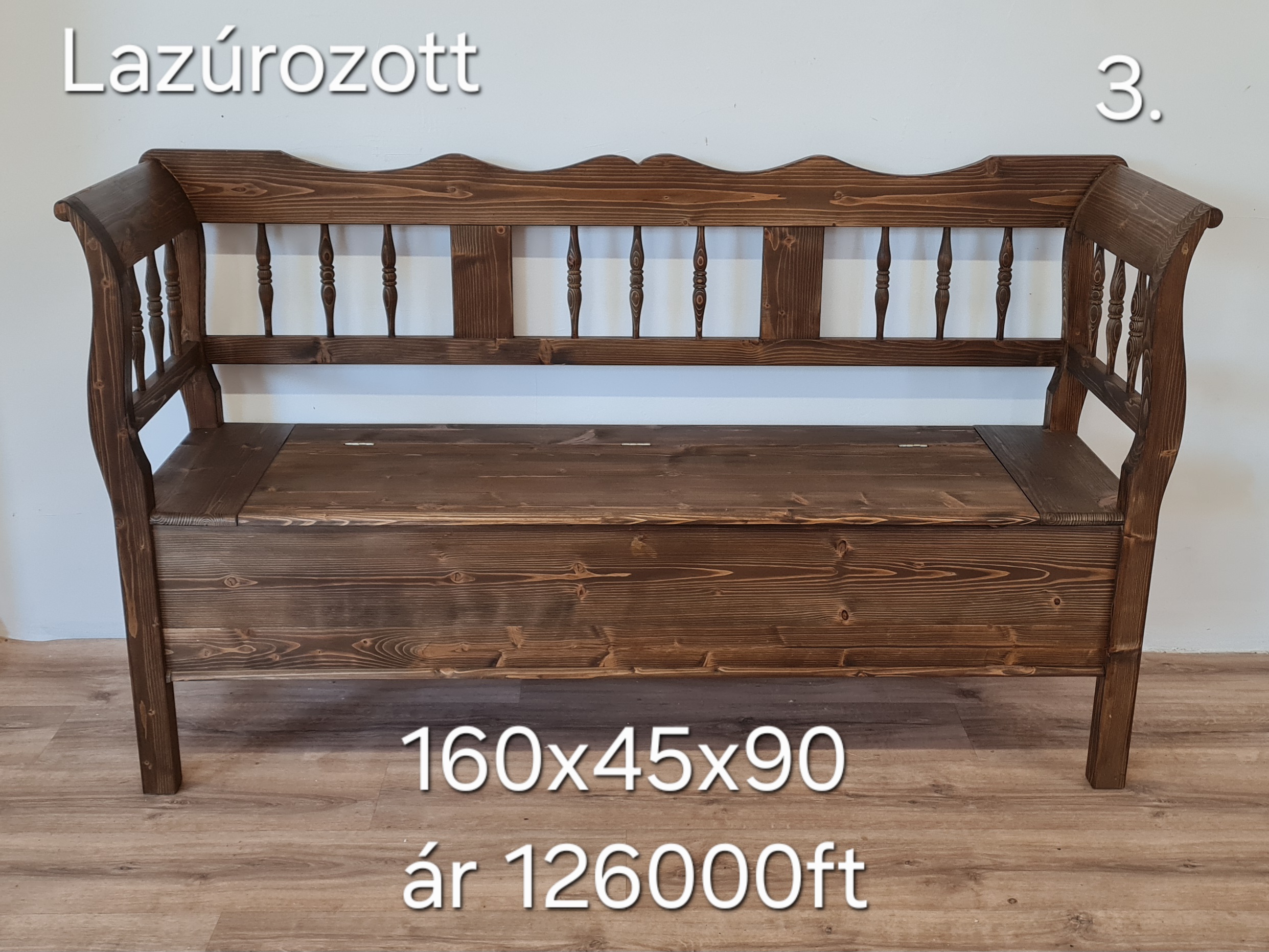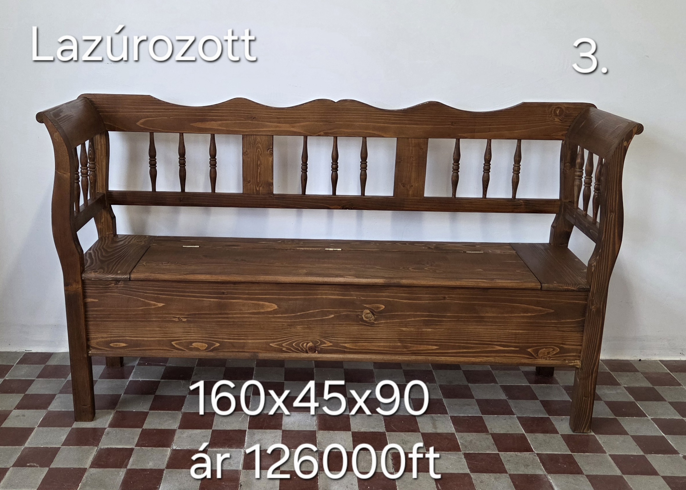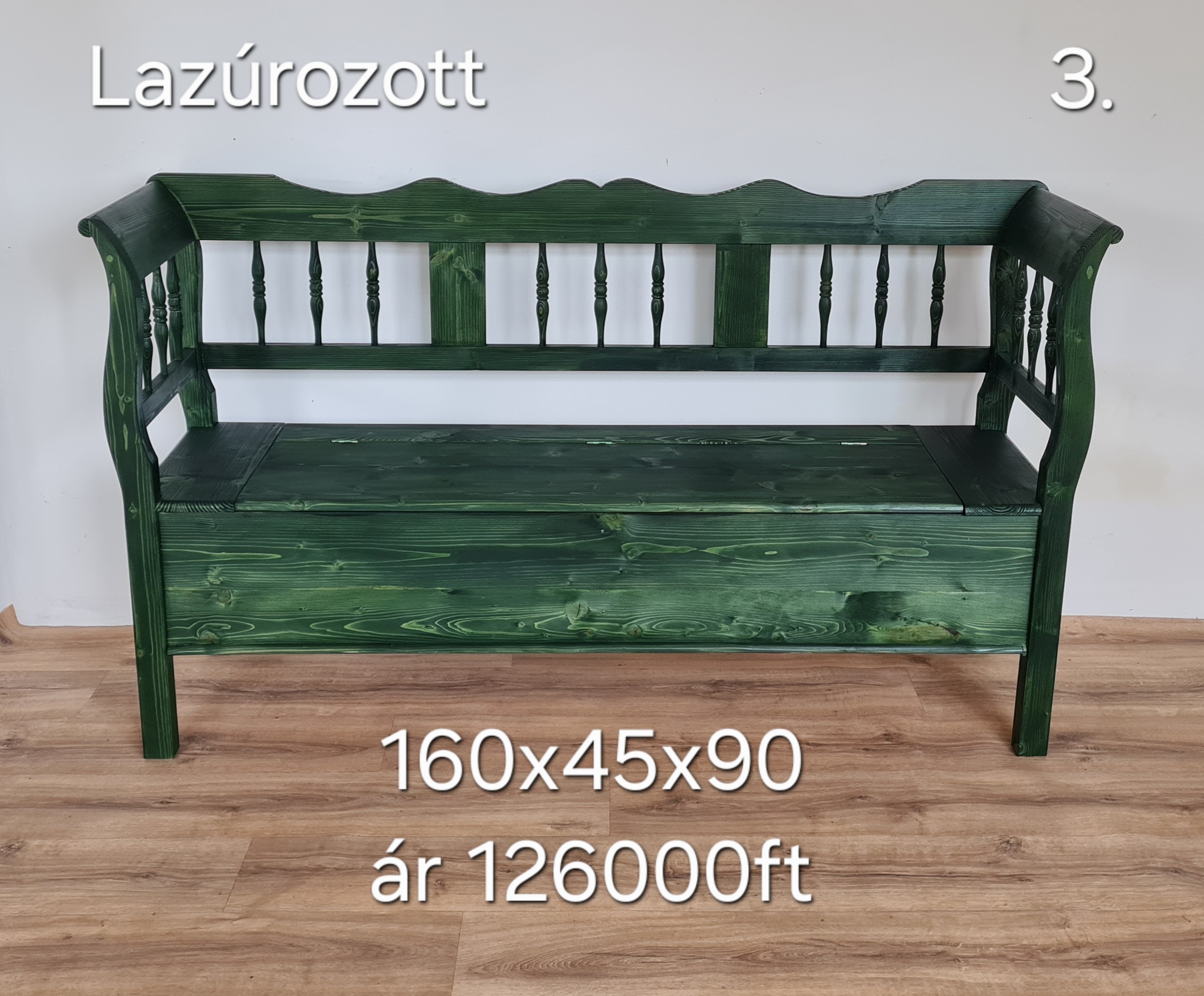 F. Esztergált karosláda 160x45x90cm – új készítésű