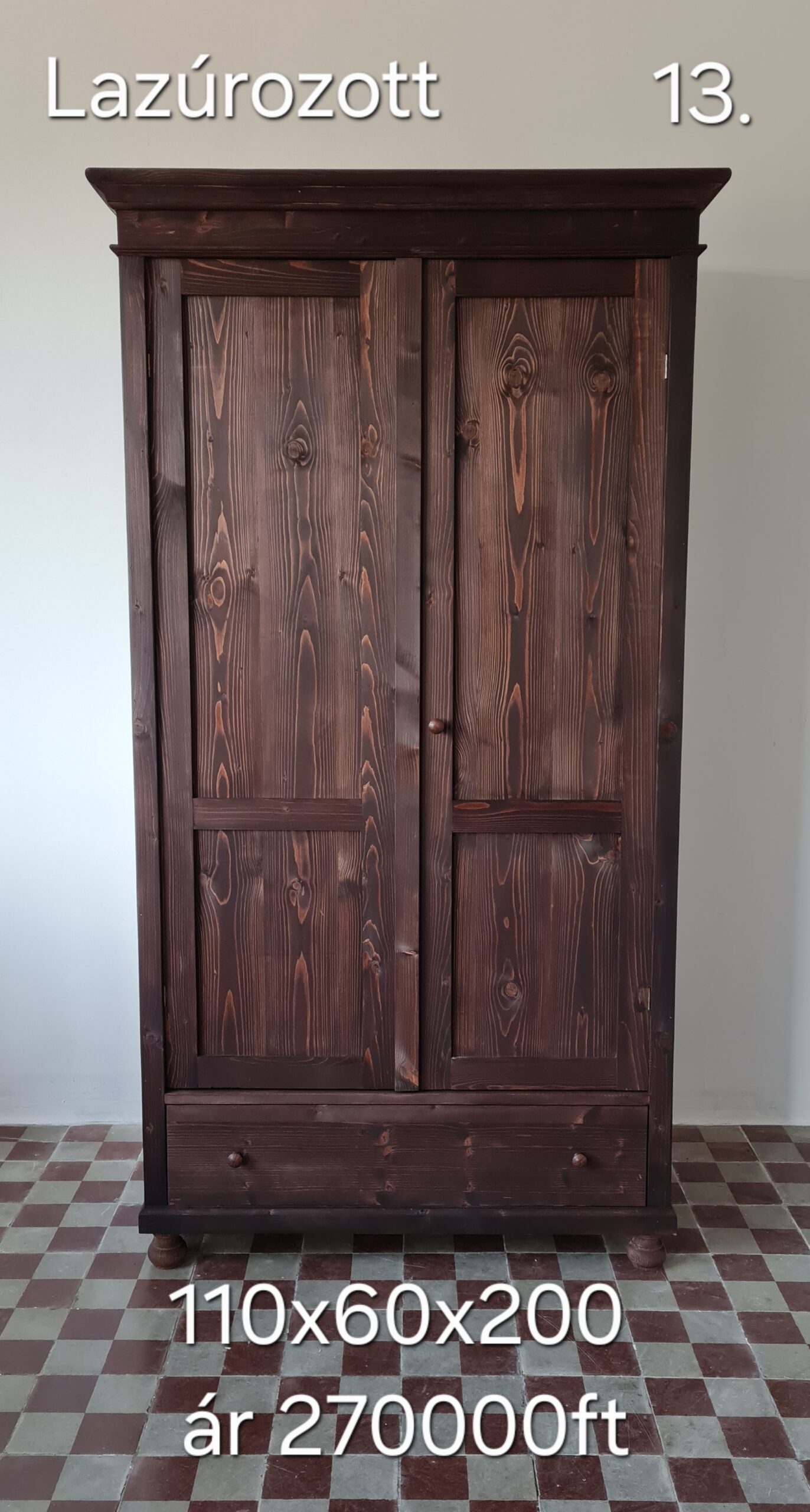 | Felületkezelés | Natúr, Waxolt, Méhviaszolt, Lazúros, Színre festett, Kombinált |